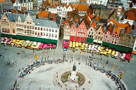 This is the view of the square from the bell tower in Brugge Belgium.